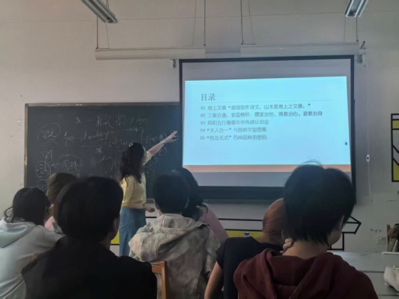 课程开始,主讲教师温瑀以“景面文心”为切入点,结合古典园林中的命名,深入阐释古典园林的主题和立意,以及如何通过园名传达主题思想和园林主人的人生观、价值观。当讲到中国传统精神文化的时候,同堂教师张丽华从哲学角度深入阐释了“天人合一”的宇宙观及其如何促进中国文化整体系统的思维方式的形成以及文化传播的价值。