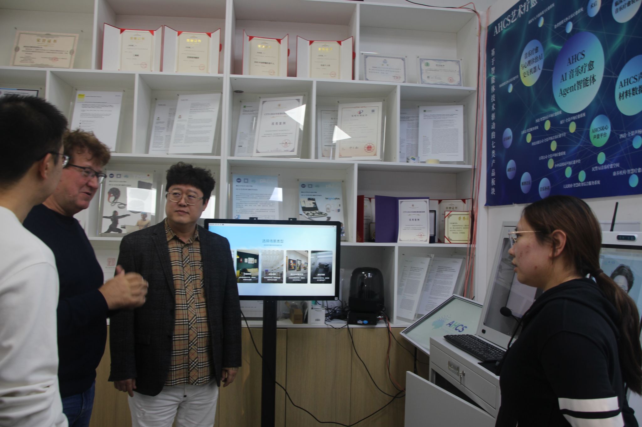 座谈中,许秋健对Wiercigroch院士的到访表示热烈欢迎,并介绍了研究中心在人工智能音乐疗愈方向的最新进展。中心自主研发的“AHCS人工智能音乐疗愈诊治机器人”,融合自然语言处理、实时情感识别和面部微表情分析等人工智能技术,构建“情绪识别—动态干预—深度疏导”的全流程心理疗愈体系;“AHCS境愈声态构建系统”基于智能情境引擎与高精度声学建模技术,实现环境自适应声态调节;“智能声乐辅助装置”通过声学传感与实时声谱分析,为声乐训练及嗓音康复提供可视化支持。