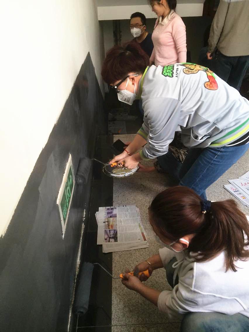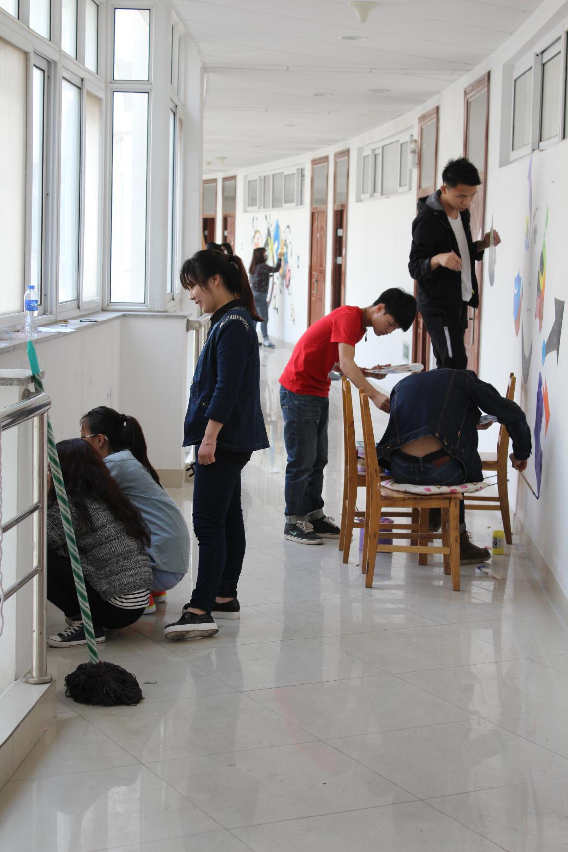 师生党员利用周四下午的思想政治学习时间,对院墙进行美化。在美化的过程中,师生分工合作,配合默契,细致认真,干劲十足。老师们先用砂纸将艺术楼和音乐馆走廊墙体上的污渍打磨掉,然后用灰色涂料粉刷了艺术楼C区楼梯间的墙裙。学生们在各位老师的带领下,凝聚力量,齐心协力将院内墙壁整理干净,不仅美化了教学环境,而且从中体会到了劳动带来的无限满足与快乐。虽然很累,但师生党员仍用饱满的热情去劳动,很快就让走廊的墙体又恢复了往日的洁白,让91麻豆