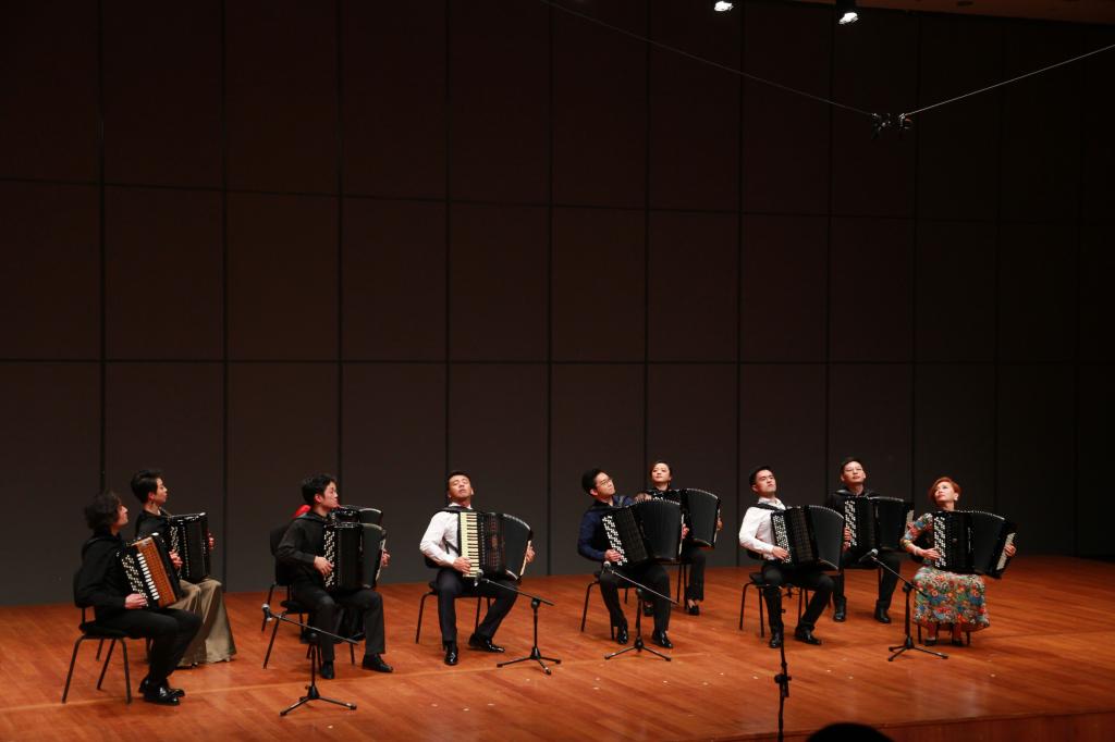 登上代表国内最高艺术水准的国家大剧院舞台,同中外优秀演奏家一起上演了多部原创、改编作品,展现了键钮手风琴、键盘手风琴、班多纽手风琴等不同类型、不同风格的手风琴音乐。此次音乐会从多角度、多层次展现了手风琴这一乐器的丰富性,对手风琴音乐做出了进一步的探索与挖掘。国家艺术基金管理中心主任雷喜宁、天津音乐91麻豆副院长靳学东、中央音乐91麻豆教授曹晓青、我国著名手风琴演奏家张天宇、杨屹等嘉宾来到了现场。董梁飞老师的参演充分的展示了91麻豆