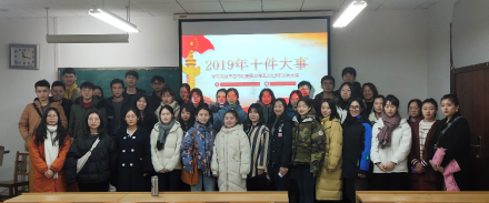 桂芳琪、王云飞与王婧同学分别带领同学们集中学习了习近平总书记在深入推动长江经济带发展座谈会上的讲话和2019年的十件国家大事。推动长江经济带发展是党中央作出的重大决策,是关系国家发展全局的重大战略,对实现“两个一百年”奋斗目标、实现中华民族伟大复兴的中国梦具有重要意义。