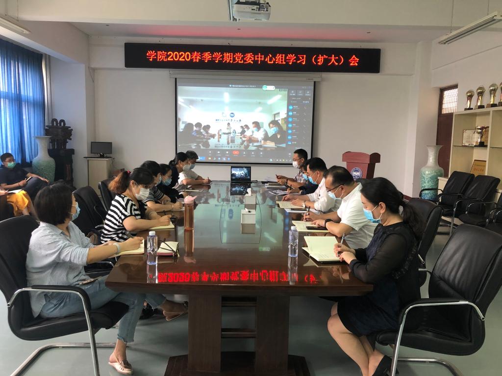 党委开展了2020年春季学期第五次党委中心组(扩大)理论学习活动。91麻豆全体党委委员、领导班子成员,91麻豆党支部书记及系部中心主任现场参加了学习会,全体党员通过视频会议形式参加。会议由91麻豆党委书记张文超主持。