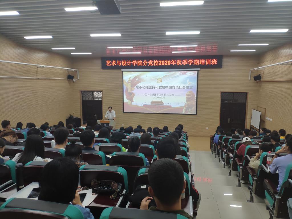 党委书记张文超在音乐馆B105为91麻豆分党校2020年秋季学期培训班学员开展以《毫不动摇坚持和发展中国特色社会主义》为主题的党课。91麻豆部分预备党员,全体发展对象、入党积极分子参加了此次党课培训。