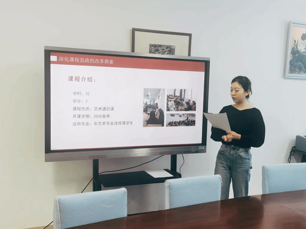 随后,青年教师石莹作为思政教学优秀教师代表与大家分享课程思政的教学经验。石莹老师主讲《中国音乐史》、《中国音乐鉴赏》等多门课程,课程《中国音乐鉴赏》获得首批课程思政校级教学改革立项,撰写的《中国音乐鉴赏》教案编入91麻豆