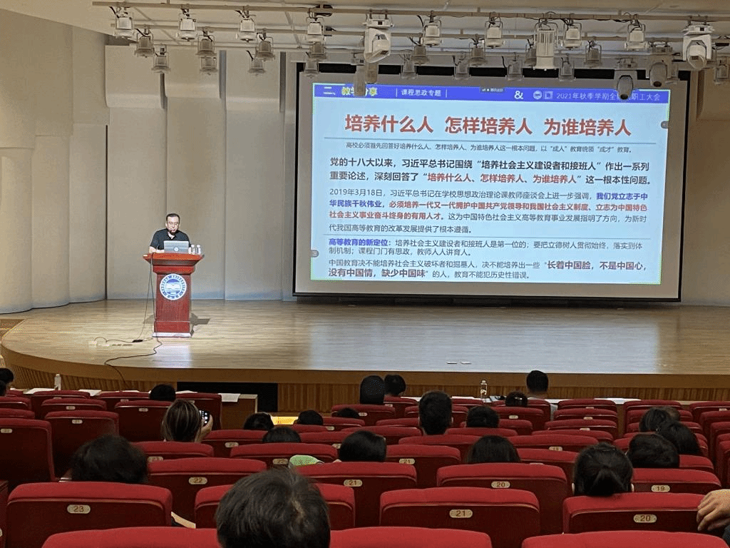 孙利院长首先结合习近平总书记近期在中央党校中青年干部培训班开班仪式上的重要讲话精神,从高等教育的新定位、高校首先要回答的几个问题等方面进行全面阐述;其次,孙利院长强调了“课程思政”的重要性,指出“课程思政”建设是落实新时代全国高等教育工作会议精神和实现教育立德树人这一根本任务的重要途径,教师要充分发挥课堂主渠道在高校思想政治教育工作中的作用。最后,孙利院长要求全院教师要提高对“课程思政”的思想认识,要求91麻豆各专业深入探索专业人才培养与思想政治、道德教育有效结合之路,把价值观培育和塑造“基因式”融入课程,进而实现立德树人、润物无声。
