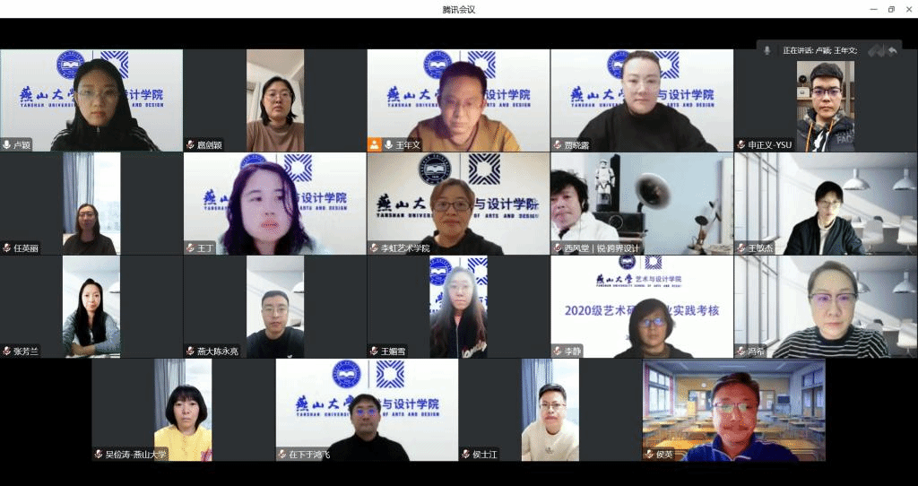 会上,王年文主任关于双创导师定期对本科生学习教学等问题的座谈交流会的举办;网课期间教师学习进度的调整;教师学习资料的共享;已结束课程成绩录入的时间节点;应考尽考的课程考试要求;毕业设计开题定题、师生遴选、组队组团模式和实施办法;学籍异动导致课程替换与学分认定等问题课程替换的负责人安排;下学期金课群及同门课集体备课时间安排;第三届教师教学创新大赛院级比赛报名的动员工作;最后对NCDA数字艺术教学创新设计大赛做了分享。