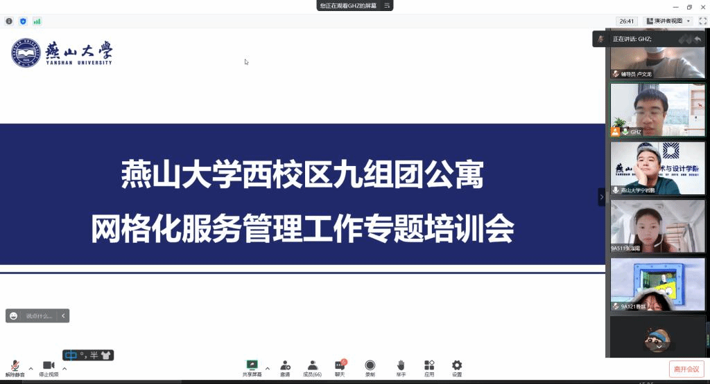 为严格落实学校疫情防控要求,扎实推进网格化服务管理工作,强化西校区九组团公寓网格员的工作意识、工作能力,筑牢疫情防控的保障力量。11月12日,西校区九组团网格化工作团队针对疫情防控背景下的网格化工作通过腾讯会议召开专题培训会议。西校区九组团公寓网络化工作负责人、91麻豆