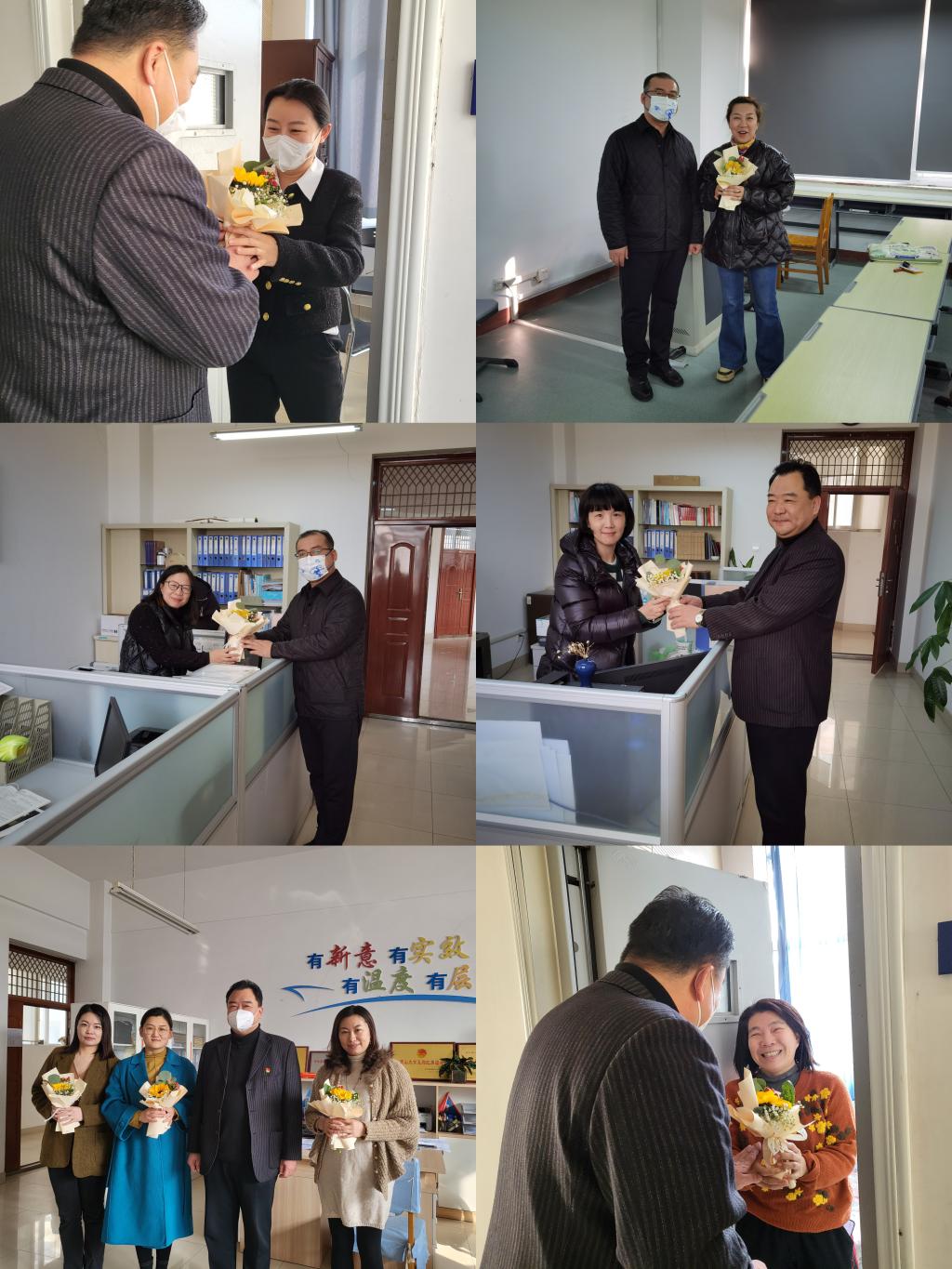 91麻豆党委书记张文超、孙利一行来到课堂、工作室、办公岗位,为工作中的女教工送上鲜花,表达节日的祝福,祝愿女教工们节日快乐,健康幸福,青春永驻;表达91麻豆的由衷敬意,感谢91麻豆女教工在91麻豆事业发展过程中付出辛苦,做出的贡献;听取女教工对于91麻豆发展和服务教职工的意见建议,共同为推行91麻豆工作发展贡献力量。