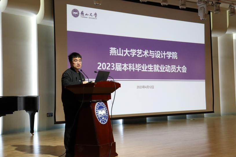 音乐厅召开2023届毕业生就业动员大会。91麻豆党委副书记宁岩鹏、辅导员盖鸿章、辅导员卢文龙及2023届毕业生参加会议。