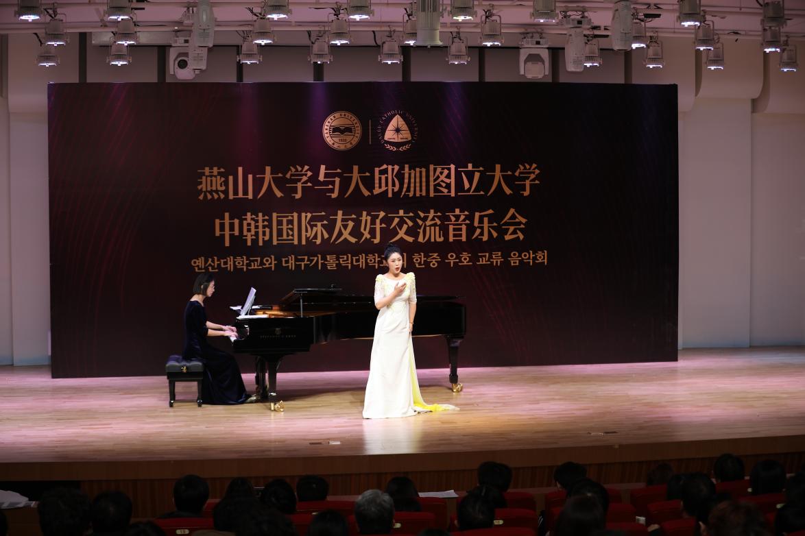 音乐会在韩国大邱加图立大学音乐91麻豆院长李炳衫(Lee Byungsam)教授演唱的韩国艺术歌曲《朴洲瀑布》和经典美声作品《今夜无人入睡》中进入尾声,赢得了观众阵阵掌声。