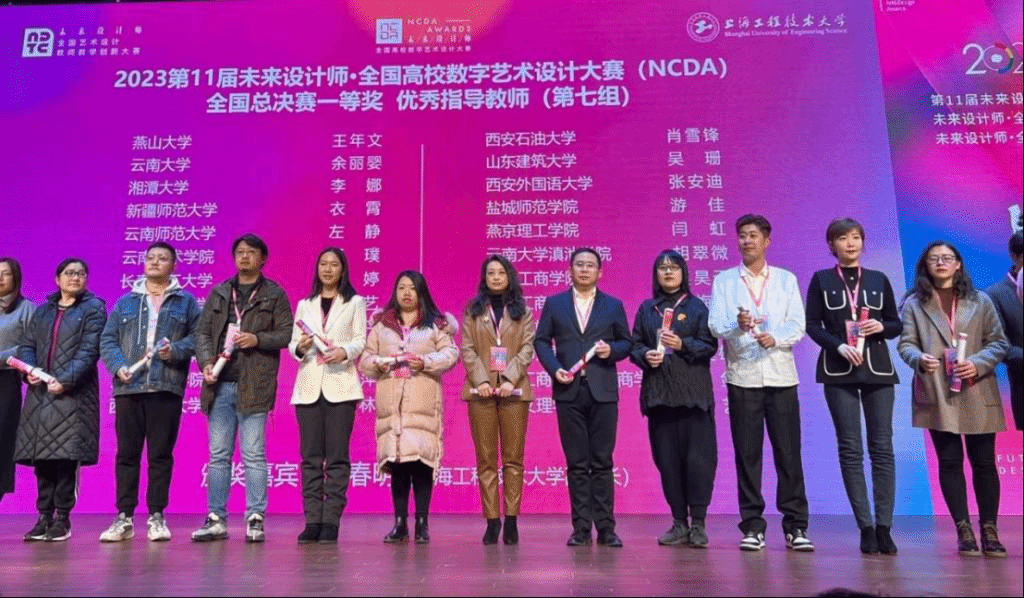 在未来设计师•全国高校数字艺术设计大赛(NCDA)中不断突破自我,尤其在本届大赛中,学生赛全国总决赛获奖26项,其中一等奖6项,二等奖8项,三等奖11项,优秀奖1项,全国总决赛优秀指导教师奖9项,全国总决赛优秀组织教师奖2项,此外,更是获得了全国总决赛卓越贡献奖;省赛获奖共计227项,其中一等奖61项,二等奖78项,三等奖88项,省级优秀指导教师奖34项,省级优秀组织教师奖2项。