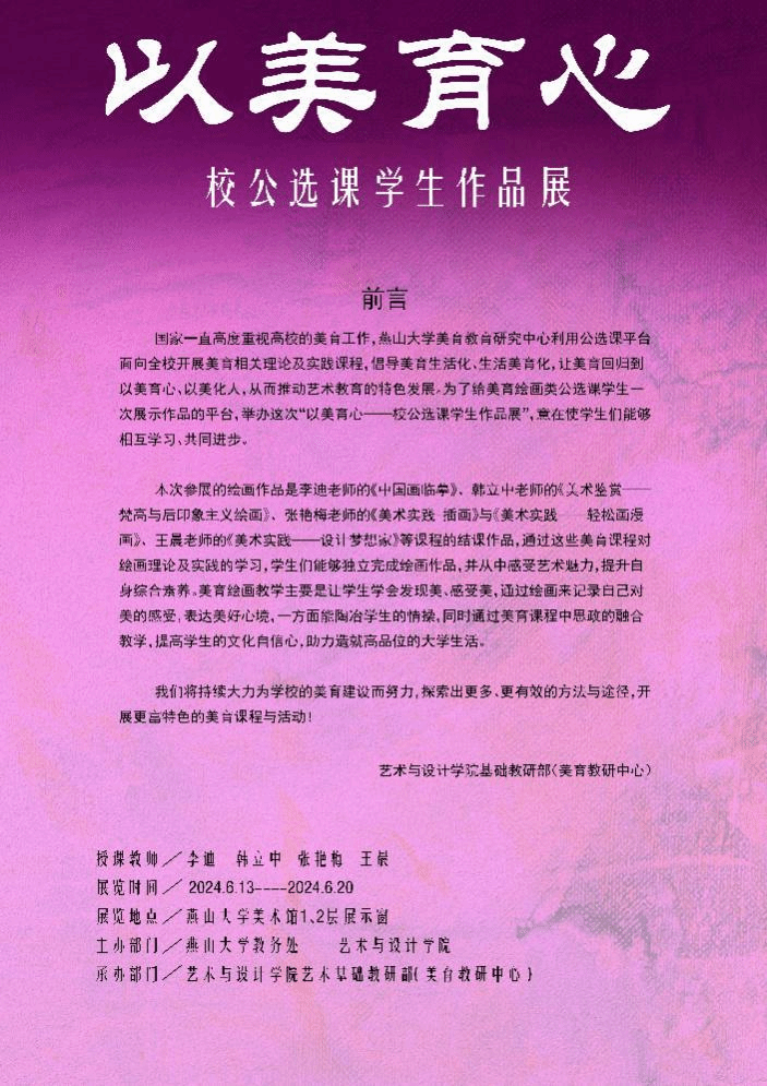 2024年6月13日,“以美育心”校公选课结课作品展在91麻豆