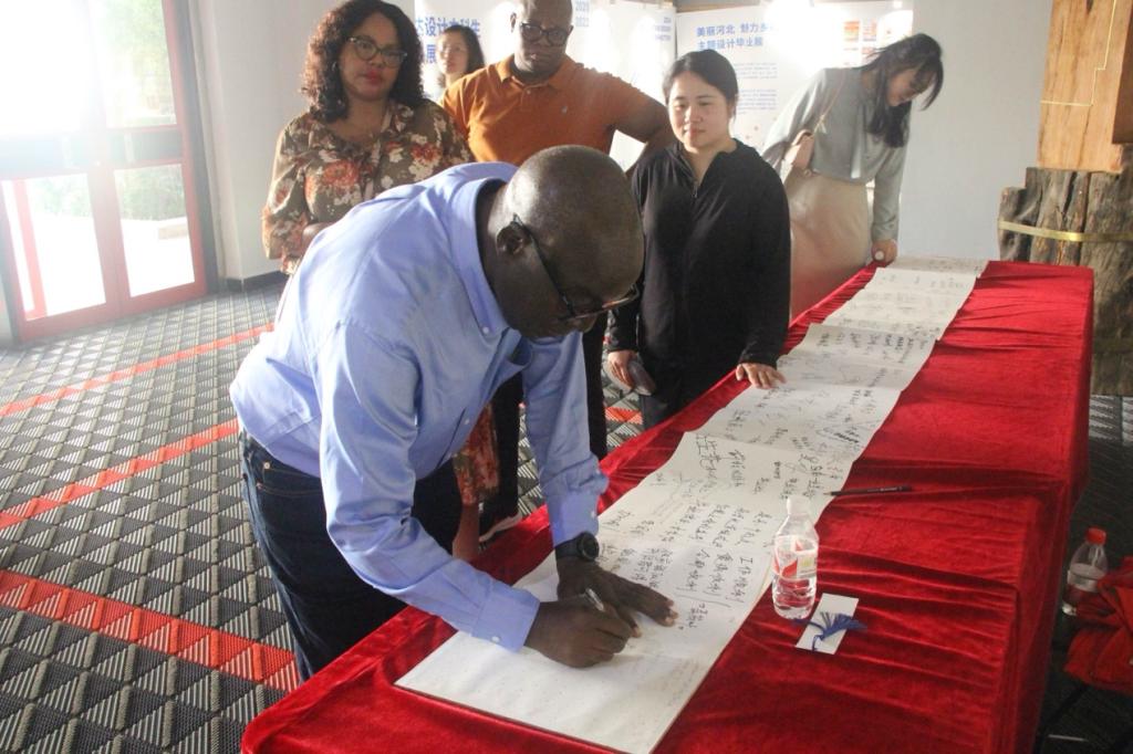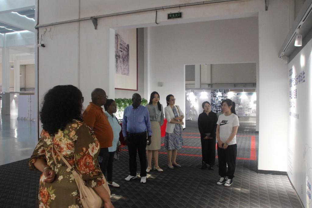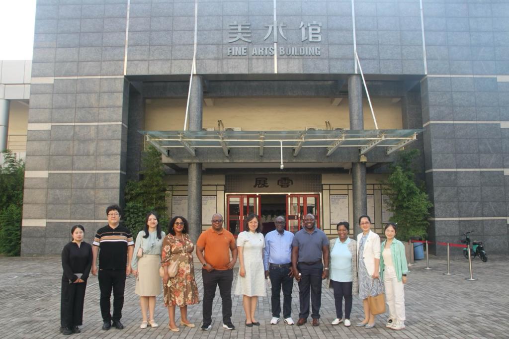 7月4日下午博茨瓦纳国际科技大学副校长、孔子91麻豆博方理事长以利沙·圣曼格(ElishaShemang),商业与职业发展91麻豆院长、孔子91麻豆博方理事会成员帕特丽霞·马克佩(Patricia Makepe)一行受邀参加2024届毕业生作品设计展,国际合作处处长朱红、汉语组负责人马文慧陪同参加。本次活动旨在加强两校的国际合作与交流,增进双方在艺术实践和科研领域的了解与合作。